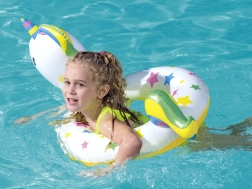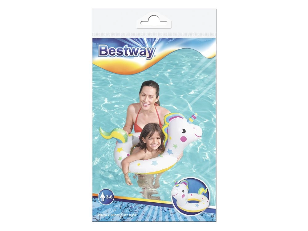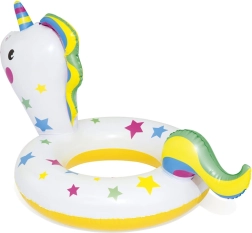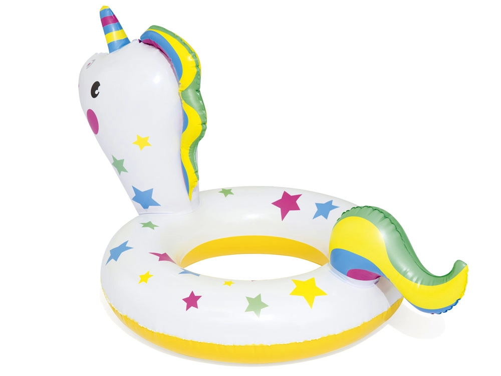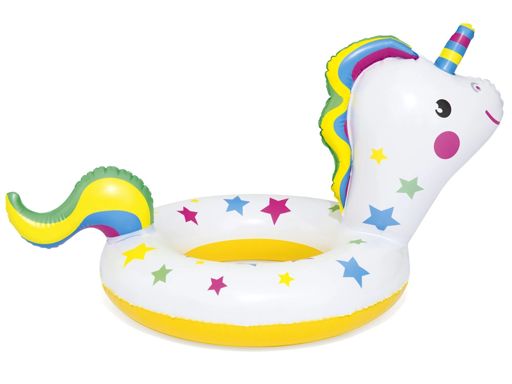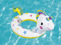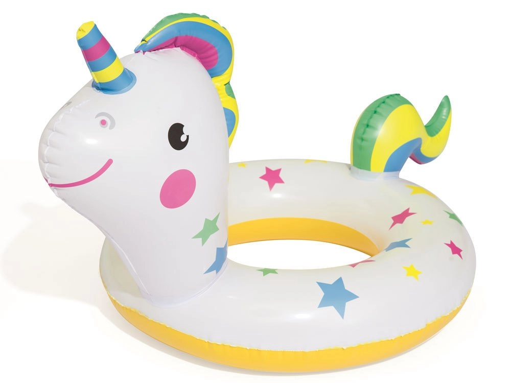 Vaikiškas BESTWAY plaukimo ratas linksmos vienaragio formos padeda ugdyti pasitikėjimą vandenyje ir suteikia daug pramogų. Ryški grafika su žvaigždutėmis patraukia akį iš pirmo žvilgsnio, o tvirta medžiaga užtikrina ilgaamžiškumą net dažnai naudojant prie baseino ar jūros.