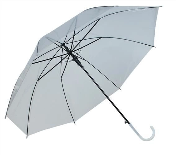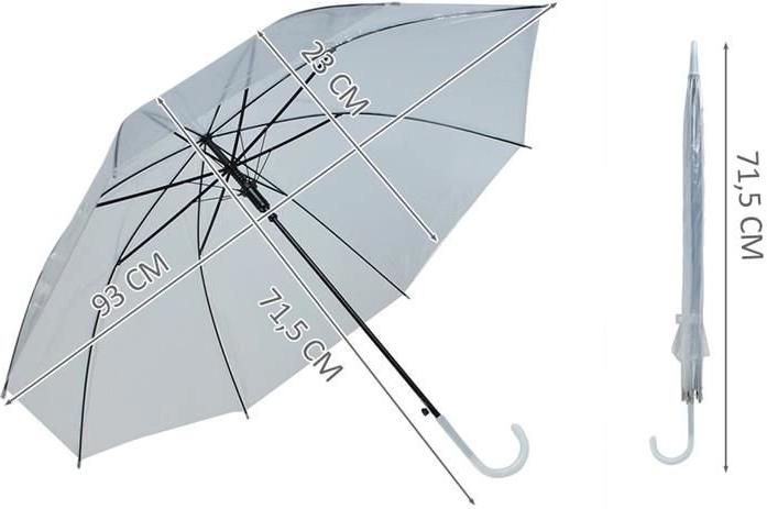 Stilingas permatomas skėtis su automatiniu atidarymu vienu mygtuku. Lengva konstrukcija, 8 stipinai ir lenkta rankena patogiam nešiojimui. Permatomas PVC gaubtas gerina matomumą ir saugumą lyjant – idealiai tinka kasdieniam naudojimui ir fotografavimui.