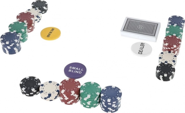 Rinkinyje taip pat yra funkciniai žetonai DEALER, SMALL BLIND ir BIG BLIND aiškiai žaidimo organizacijai, 2× 54 kortos sklandžiai kaladžių rotacijai ir 5 kauliukai papildomam stalo pramogų pasirinkimui. Rinkinys idealiai tinka namų žaidimų kambariams, vakarėliams ir draugiškiems turnyrams.