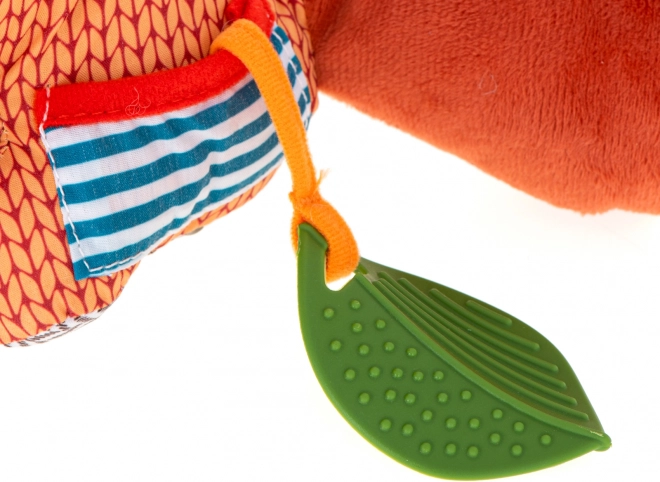 Draugiškos lapės formos žaislas sužavės puikiu apdirbimu. Pagamintas iš įvairių medžiagų, siūlo skirtingas tekstūras ir savybes. Skatina jutiminį suvokimą mažiems vaikams ir jų aplinkos pažinimą.