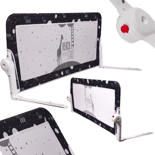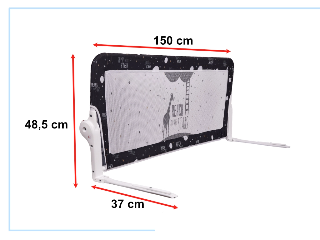 Praktiška vaikiška lovos užtvara, 150 cm ilgio, su nuleidimo mechanizmu padeda išvengti vaiko išvirtimo iš lovos naktį. Dėl tvirtos metalinės konstrukcijos, atsparių plastikinių jungčių ir kvėpuojančio tinklo ji užtikrina patikimą apsaugą, paprastą montavimą be gręžimo ir patogų nuleidimą vienu mygtukų paspaudimu.