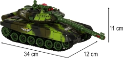 Mėgaukitės adrenalino kupinomis dvikovomis su RC tanku miško kamufliaže. Jis siūlo sklandų 2,4 GHz valdymą, besisukančią bokštelį, realistinę atatranką šūvio metu, šviesos efektus ir variklio bei šaudymo garsus. Po pataikymo mūšio būsena rodoma galinėse indikatorinėse lemputėse, o po trijų pataikymų priešininkas laikinai išjungiamas. Komplekte yra įkraunamas akumuliatorius tankui ir detali šaulio figūrėlė. Puiki dovana tiek mažiems, tiek dideliems karinės technikos gerbėjams – žaidimas ir įgūdžių treniruotė viename.