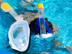 Vamzdelio viršuje įdiegtas dry-top mechanizmas, kuris riboja vandens patekimą iš viršaus. Kaukę lengvai pritaikysite naudodami reguliuojamus dirželius, o minkštas sandariklis maloniai priglus prie veido. Rinkinyje taip pat yra ausų kištukai ir laikiklis GOPRO veiksmo kamerai jūsų povandeniniams nuotykiams įamžinti.