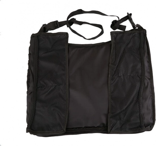 Keturios tinklinės kišenės aksesuarams ir reguliuojami dirželiai su sagtimis greitam tvirtinimui prie automobilinės kėdutės ar vežimėlio.