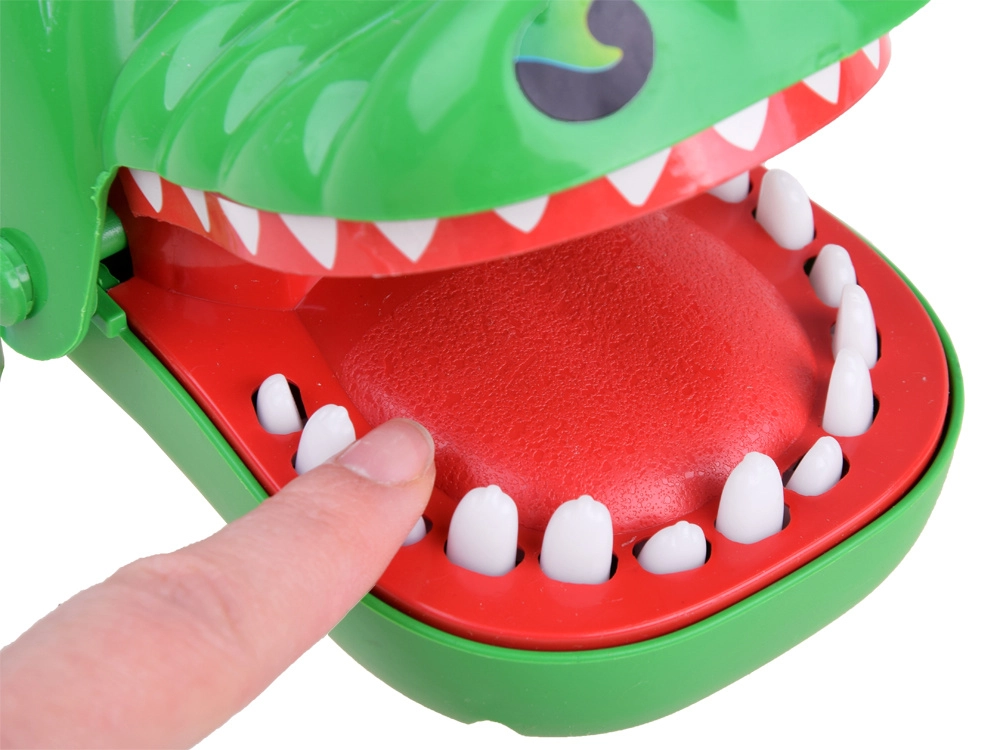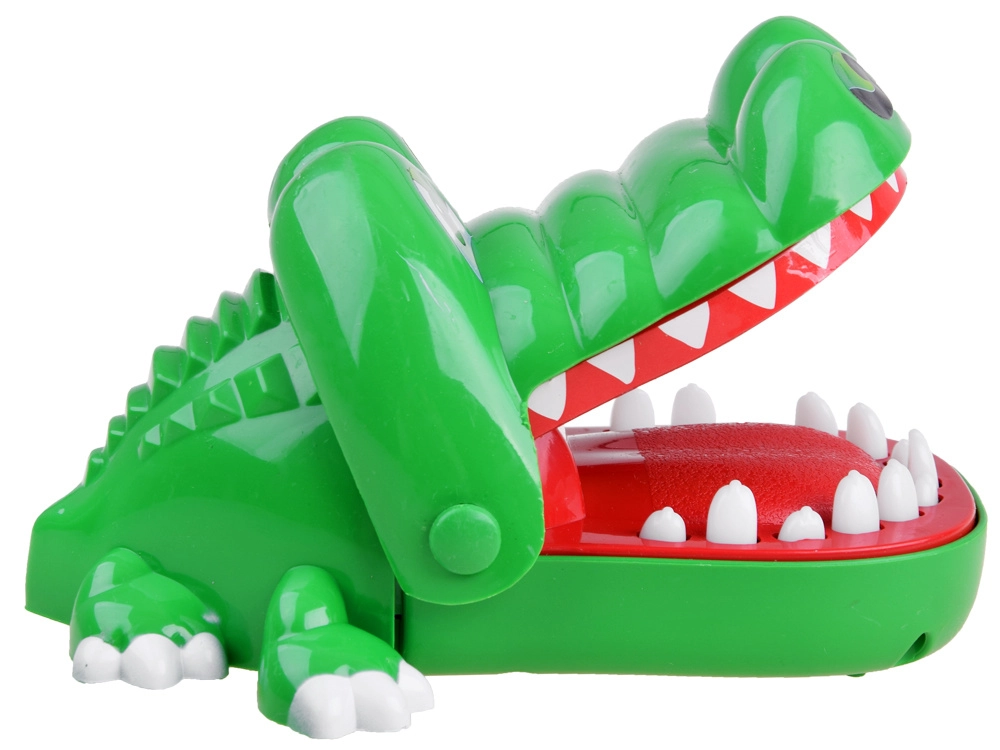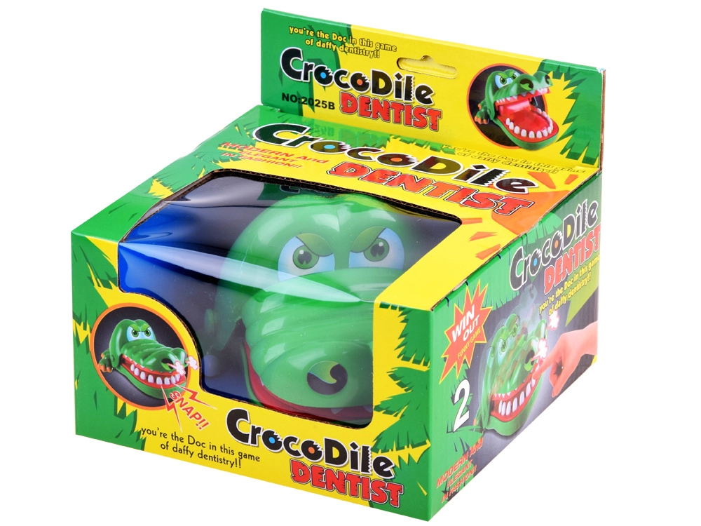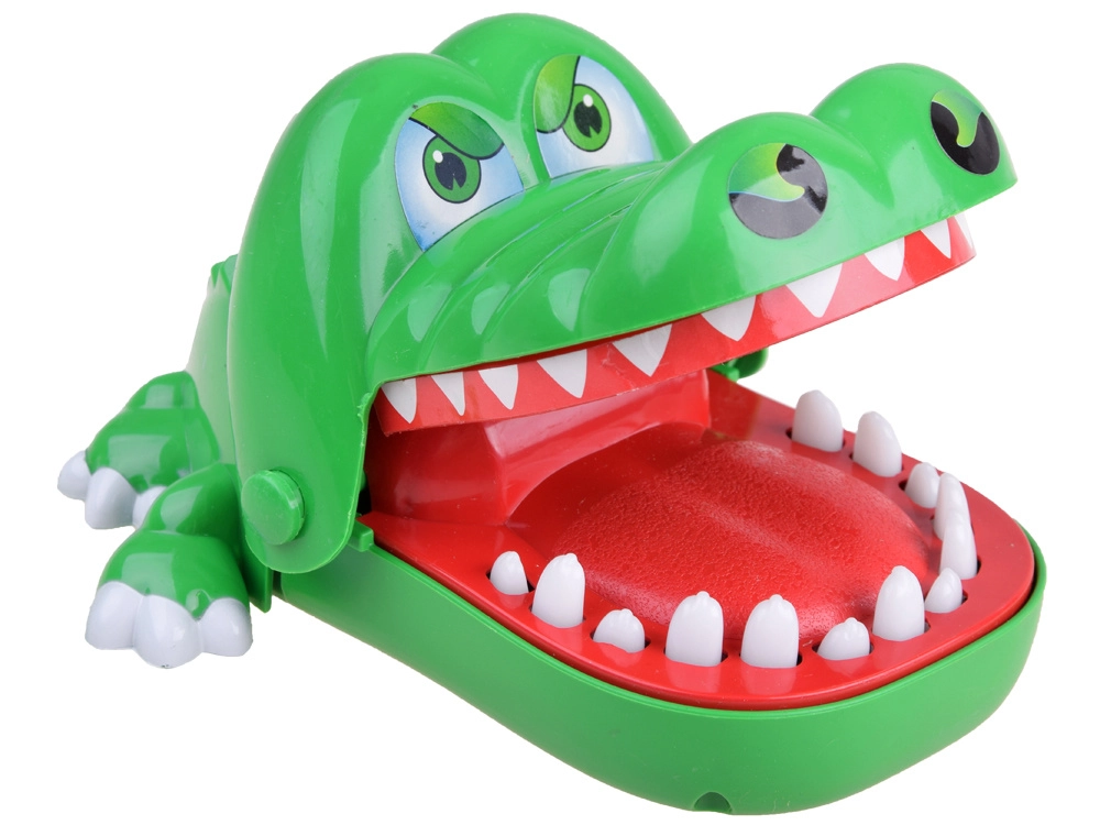 Tapkite drąsaus krokodilo stomatologu! Žaidėjai paeiliui spaudžia atskirus dantis – vienas yra „skaudantis“, ir jį paspaudus krokodilas staiga užveria nasrus. Greitas reakcijos žaidimas 2 ir daugiau žaidėjų, kuris atneša įtampos, juoko ir lavina refleksus bei kantrybę.