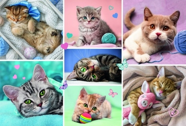 Populiari dėlionė Kačių pasaulyje leidžia vaikams smagiai leisti laiką dėliojant paveikslą kačių pasaulio tema. Užbaigus dėlioti, gausite paveikslą, kurio matmenys 410×275 mm, ir jis taps puikiu vaikų kambario akcentu.