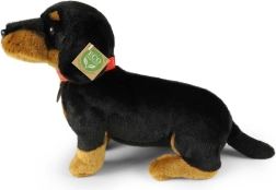 Šis pliušinis taksas traukia akį ištikimu, realistišku vaizdu, švelniu kailiuku ir mielomis detalėmis, tokiomis kaip raudonas antkaklis ir ryškios akys. Idealiai tinka kaip miego palydovas, vaikų kambario dekoracija ar miela dovana.