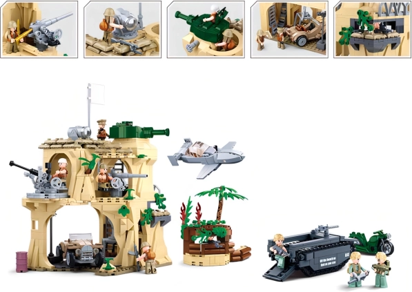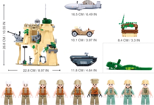 Išsamus konstruktorius, įkvėptas Ivodžimos mūšio, suteikia viską, ko reikia vaikams ir kolekcininkams įtraukiančiam veiksmo žaidimui. Pakuotėje rasite daugiapakopę tvirtovę su gynybiniais elementais, transporto ir kovinę techniką bei mini figūrėlių rinkinį su judriomis dalimis realistiniams scenarijams. Vidutinio sudėtingumo statyba suteikia malonų iššūkį be bereikalingos frustracijos.