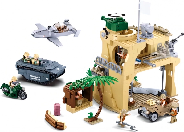 Pastatykite savo karinę bazę ir atkurkite legendinį konfliktą su 1027 detalėmis ir 9 figūrėlėmis. Šis detalus SLUBAN rinkinys siūlo tvirtovę su slėptuvėmis, karinį džipą, naikintuvą, vikšrinę transporto priemonę ir motociklą. Patvaraus ABS plastiko detalės yra suderinamos su LEGO, COBI ir MEGA BLOKS ir džiugina kokybišku atlikimu bei puikiu žaidimų potencialu.