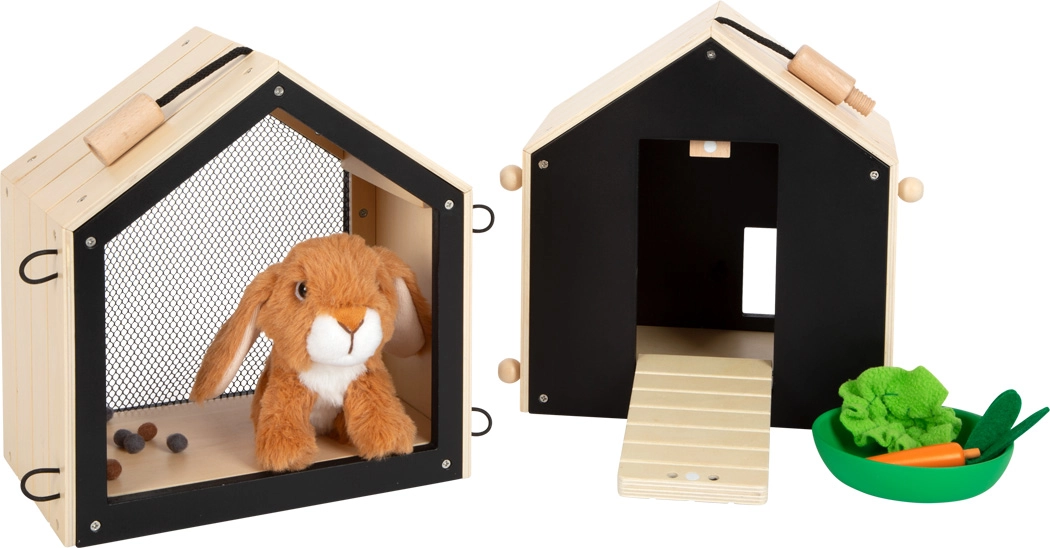 Šis apgalvotas, iš kokybiškos medienos pagamintas narvelis turi dvi atskiras būdeles – vieną ramiam miegui ir kitą su tinkleliu langelyje aplinkai stebėti. Prie būdelių lengvai pritvirtinsite vielinius aptvarus ir sukursite lauko voljerą dar įdomesniam žaidimui. Galinę juodą sienelę galima rašyti kreida, kas suteikia dar daugiau kūrybiškos sąveikos.