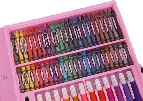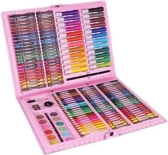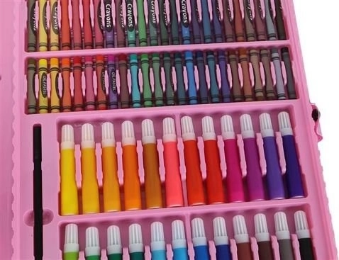 Šis gausiai sukomplektuotas rinkinys siūlo viską, ko reikia vaikams ir pradedantiesiems menininkams fantazijai bei smulkiajai motorikai lavinti. 168 dalys, kruopščiai sutalpintos tvirtame lagaminėlyje, užtikrina tvarką, greitą spalvų pasirinkimą ir patogų nešiojimą. Tinka vaikams nuo 3 metų.