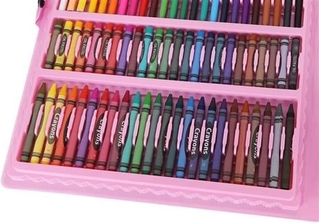 Pilnas kūrybinis rinkinys patogiame rožiniame lagaminėlyje su 168 dalimis mažiems ir dideliems kūrėjams. Jame rasite pieštukus, flomasterius, vaškines kreideles, aliejinius pastelius, akvareles ir naudingus priedus, įskaitant popierių ir paletę. Dėl aiškių skyrelių ir rankenos idealiai tinka namuose, mokykloje ir kelionėse.