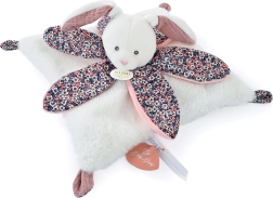Šis žavus migdukėlis su triušiuko galvute ir minkštu pleduku suteikia kūdikiui saugumo, švelnumo ir lengvų jutiminių impulsų pojūčiams lavinti. Viena pusė iš itin švelnaus pliušo, kita – iš šviežiai margintos medvilnės, sukurtos stilistų, kuri traukia akį ir maloni prisiliesti.