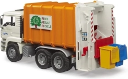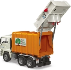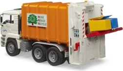 Realistiškas šiukšliavežis BRUDER MAN TGA masteliu 1:16 sužavės mažus ir didelius technikos gerbėjus. Jis turi pakreipiamą kabiną, funkcionalų presą su dviem sraigtiniais konvejeriais, atsidaromas galines duris su užraktu ir dvi pridėtas šiukšliadėžes. Pagamintas iš patvaraus ABS plastiko Vokietijoje, suderinamas su Bworld figūrėlėmis ir idealus vaikams nuo 3 metų.