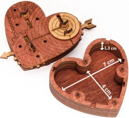 Ši stilinga širdis su dantračiais ir graviravimu slepia išmanų kodo mechanizmą. Nustačius teisingus tris žodžius, tereikia patraukti už rodyklės ir dangtelis atsivers. Širdį galite naudoti kaip saugią pakuotę smulkmenai, asmeninei žinutei arba kaip dizaino galvosūkį ekspozicijai.