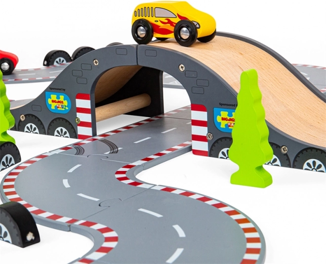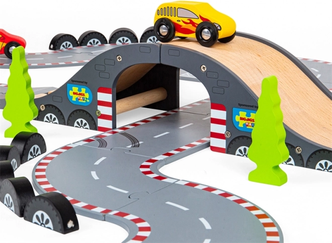 - 47 dalių rinkinys su mediniais kelio segmentais