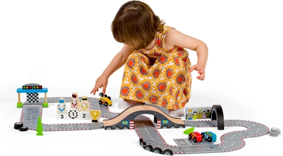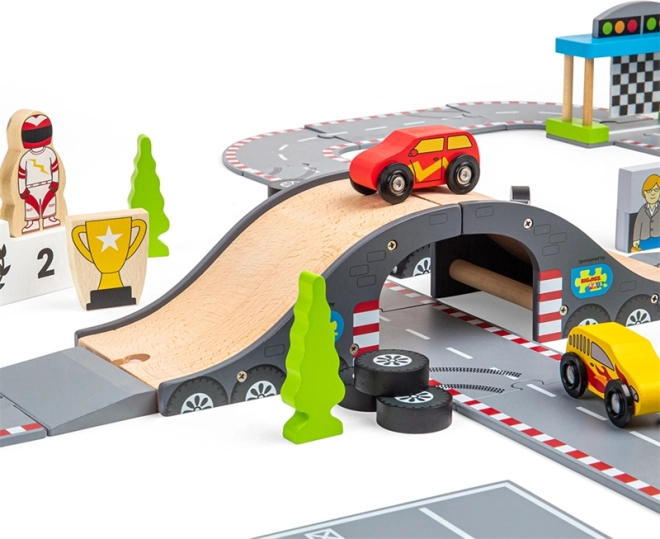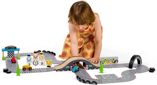 47 dalių rinkinį sudaro lenktyniniai automobiliai, nugalėtojų pakyla, viadukas ir daugiau.