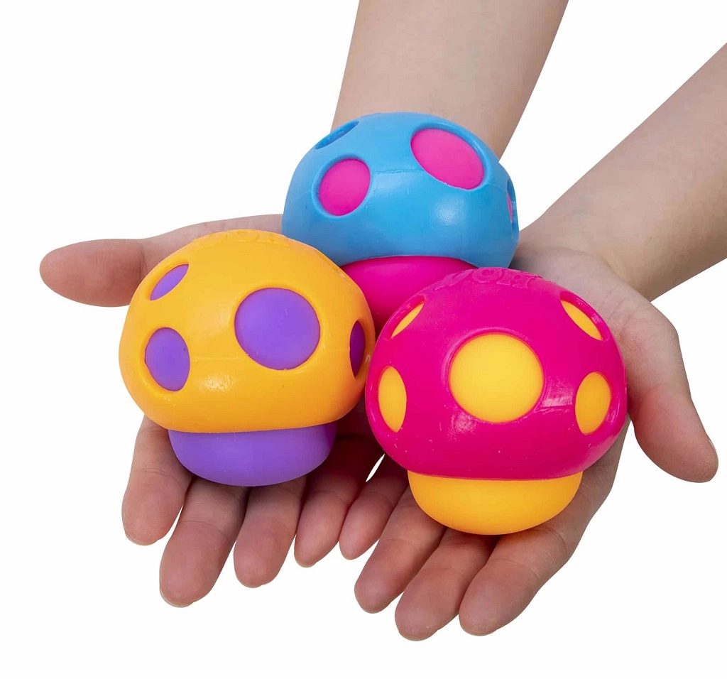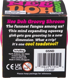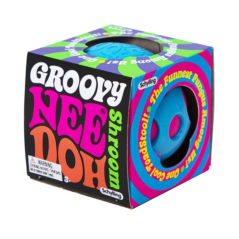 Spraudomasis grybas NEE DOH groovy shroom iš SCHYLLING – linksmas antistresinis žaislas grybo formos su spalvotomis angomis, per kurias spaudžiant išsiveržia minkštas vidus. Suteikia stiprią lytėjimo patirtį, padeda nuraminti mintis ir sutelkti dėmesį mokantis, dirbant ar ilsintis.