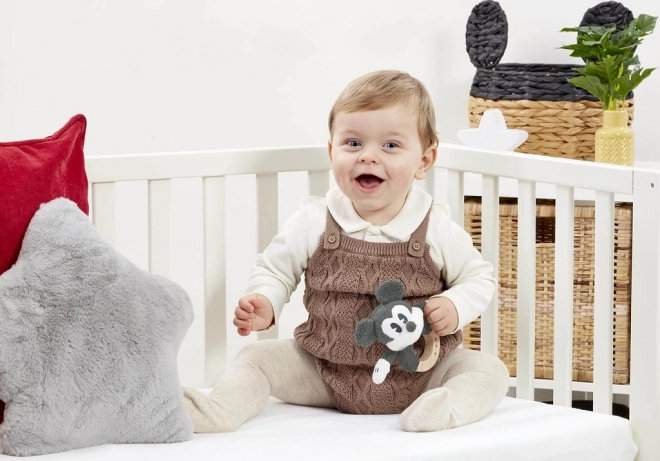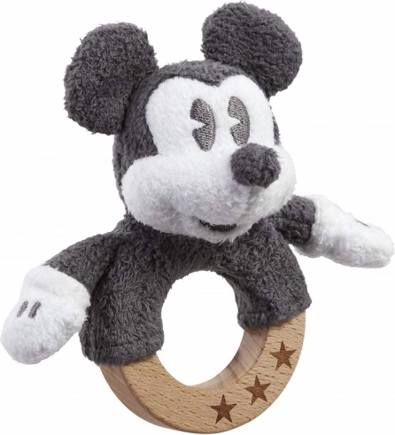 Atraskite idealią pirmąją kūdikio žaislą: barškutį su ikonišku MICKEY MOUSE ant tvirto bukmedžio žiedo, dekoruoto žvaigždutėmis. Dėl minkšto pliušo ir lygios medienos jis yra saugus, malonus liesti ir skatina ankstyvuosius įgūdžius.