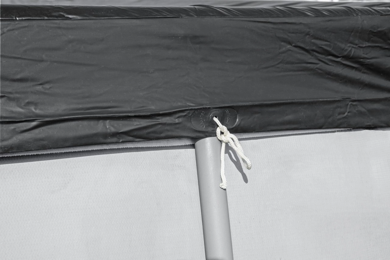 Dėl komplekte esančių virvių uždangalą galima patikimai pritvirtinti ir užtikrinti nuolatinę baseino apsaugą.