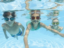 Bestway vaikų plaukimo akiniai geltoni 7+ sukurti maksimaliam komfortui ir akių apsaugai plaukimo metu. Dėl reguliuojamo silikoninio dirželio ir ergonominio dizaino jie lengvai prisitaiko prie bet kokios veido formos. Šie akiniai suteikia UV apsaugą ir smūgiams atsparius tonuotus lęšius, kurie gerina matomumą ir saugo akis nuo saulės spindulių bei atspindžių.