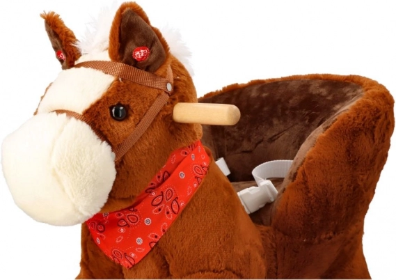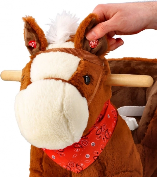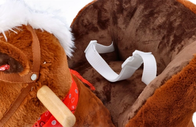 Sukurtas atsižvelgiant į saugumą ir komfortą, turi minkštą sėdynę, kurios gylis apie 20 x 14 cm, leidžiančią patogiai sėdėti supantis. Papuoštas balta karčiais ir raudonu šaliku, šis arkliukas suteikia ne tik pramogą, bet ir stilių.