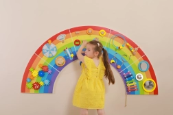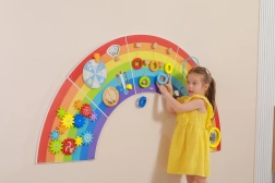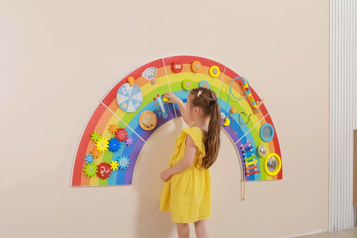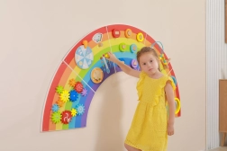 Vaivorykštės lankinė konstrukcija skatina bendrus skirtingo ūgio vaikų žaidimus ir natūraliai moko spalvas, formas, garsus bei orų pokyčius. Kiekvienas modulis suteikia kitokį stimulą jutiminiam vystymuisi, loginiam mąstymui ir kantrybei, o stabili sieninė konstrukcija taupo vietą žaidimų kambaryje ar klasėje.