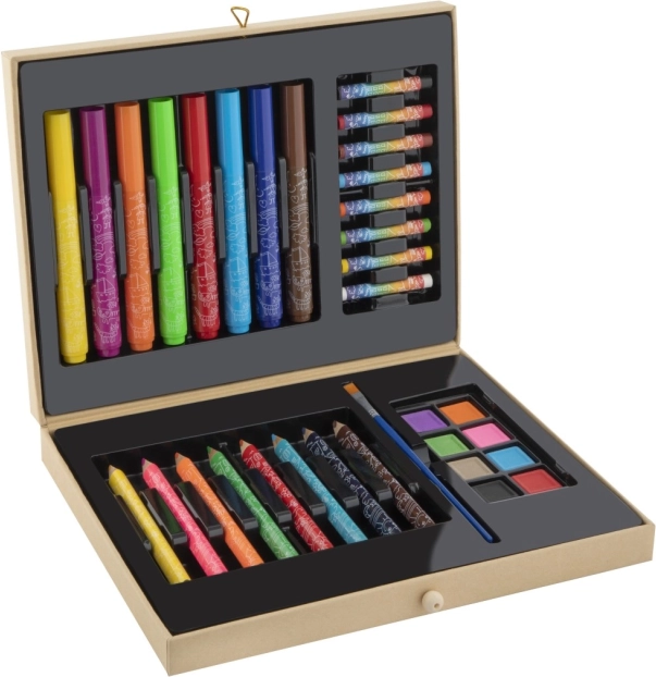 Šis dailininko lagaminėlis – puikus pasirinkimas vaikų vaizduotei ir smulkiajai motorikai lavinti. Dėl gausios spalvų paletės ir įvairių dailės priemonių vaikai išbandys piešimą, spalvinimą ir tapybą akvarele. Nuo pirmųjų brūkštelėjimų iki baigtų kūrinių – viskas viename kompaktiškame rinkinyje.
