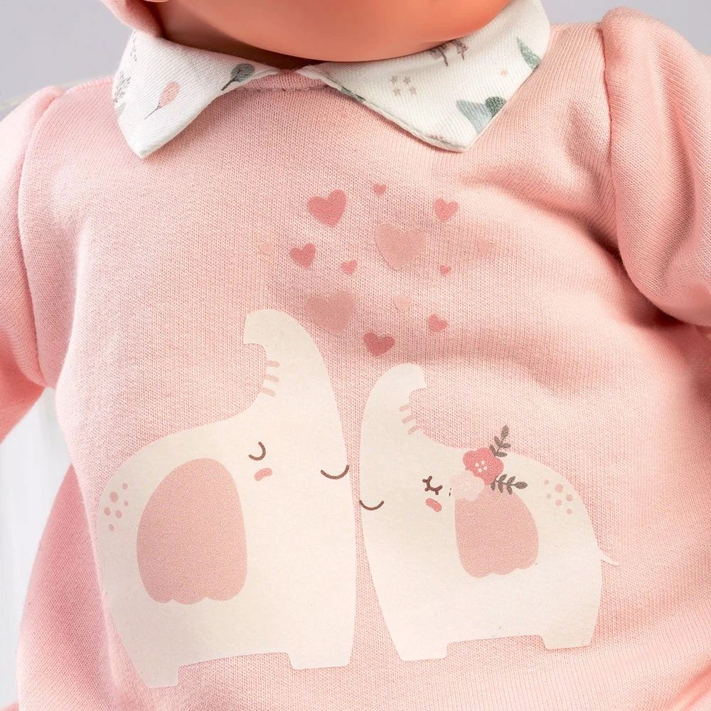 Mielas kūdikis Joelle iš Llorens prekės ženklo džiugina kokybišku atlikimu ir realistiškomis detalėmis. Ji turi minkštą pilvuką, malonų glausti, vinilines rankytes, kojytes ir galvytę su švelniu šešėliavimu, blakstienomis ir žvilgančiomis akimis. Drabužėliai siūti iš ekologiškos medvilnės, vilnos ir perdirbtų medžiagų. Puiki dovana vaikams su edukacine ir žaidybine funkcija.