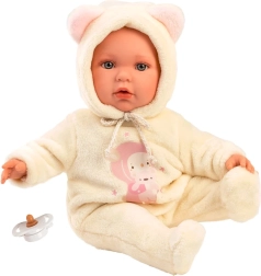 Lėlytė kūdikis Julia 42 cm kruopščiai pagaminta tradicinėje Ispanijos dirbtuvėje Llorens. Dėl rankų darbo ji atrodo itin realistiška – švelnūs šešėliai, gražios blakstienos ir akys suteikia lėlytei gyvą išraišką. Minkštas medvilninis pilvukas vilioja glostyti, o vinilinės rankos, kojos ir galvutė suteikia autentišką pojūtį žaidžiant.