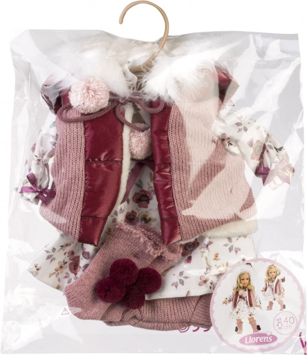 Elegantiški 4 dalių drabužėliai Llorens lėlėms, 40 cm dydžio, rankų darbo Ispanijoje. Puikus aksesuaras mažosioms lėlių mylėtojoms.