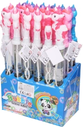 Smagus vienaragio formos burbulų pūstuvas vaikams ir suaugusiesiems, talpa 100 ml, ilgis 38 cm. Kuria daugybę žvilgančių burbulų – idealiai tinka sodui, šventėms ir vaikų žaidimams. Galimos 4 spalvinės variacijos.