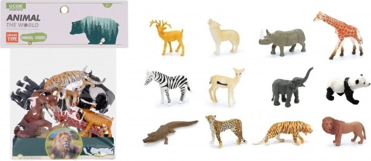 - 12 skirtingų gyvūnų rūšių figūrėlių