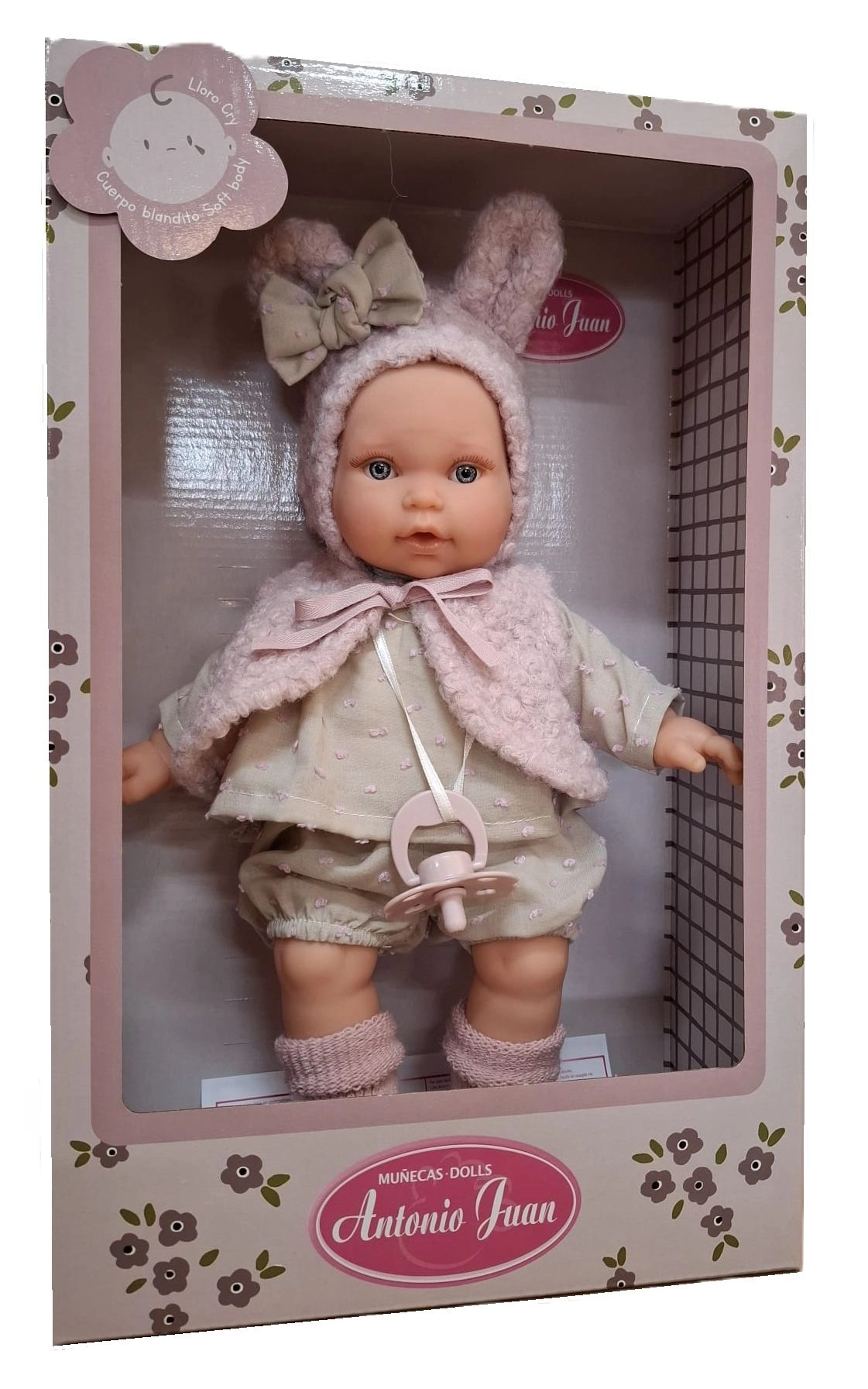 Mielutė Antonio Juan Kika lėlė, 27 cm dydžio, yra tarsi tikras kūdikis – turi minkštą medžiaginį kūnelį, vinilinę galvytę ir galūnes, reaguoja į magnetinį čiulptuką, o jį ištraukus verkia ir sako „mama“, „papa“. Pateikiama dovanų dėžutėje, rankų darbo, dalis rūbelių pagaminta iš organinės medvilnės. Tinka nuo 2 metų.