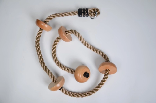 Laipiojimo virvė su mediniais laipteliais idealiai tinka vaikams, kurie nori išmokti laipioti ir kartu mėgautis smagiu supimusi.