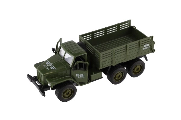 Atraskite realistišką 17 cm ilgio karinį krovininį sunkvežimį, idealiai tinkantį mažiesiems karinės technikos gerbėjams. Dėl laisvos eigos režimo jį lengva valdyti, jis skatina kūrybišką žaidimą ir lavina vaikų fantaziją. Kompaktiški matmenys ir patvari plastikinė konstrukcija daro jį puikia dovana vaikams nuo 3 metų.